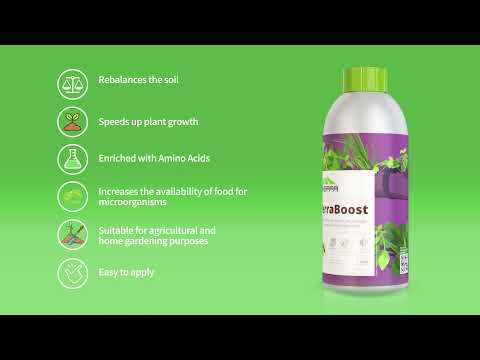 - Enriched with Amino Acids, TerraBoost increases the availability of food for microorganisms, which is essential for creating healthy soil and for plant mineral uptake.