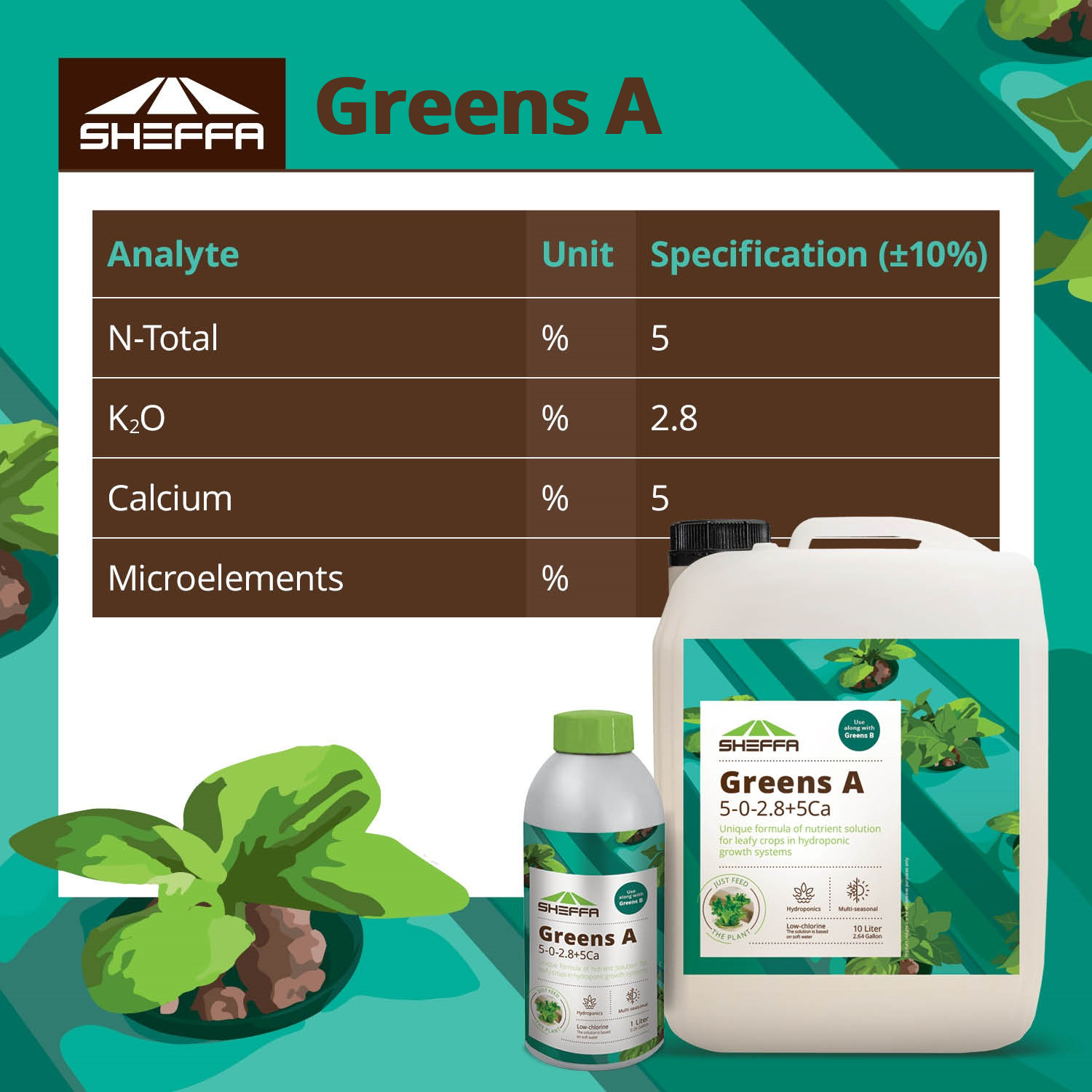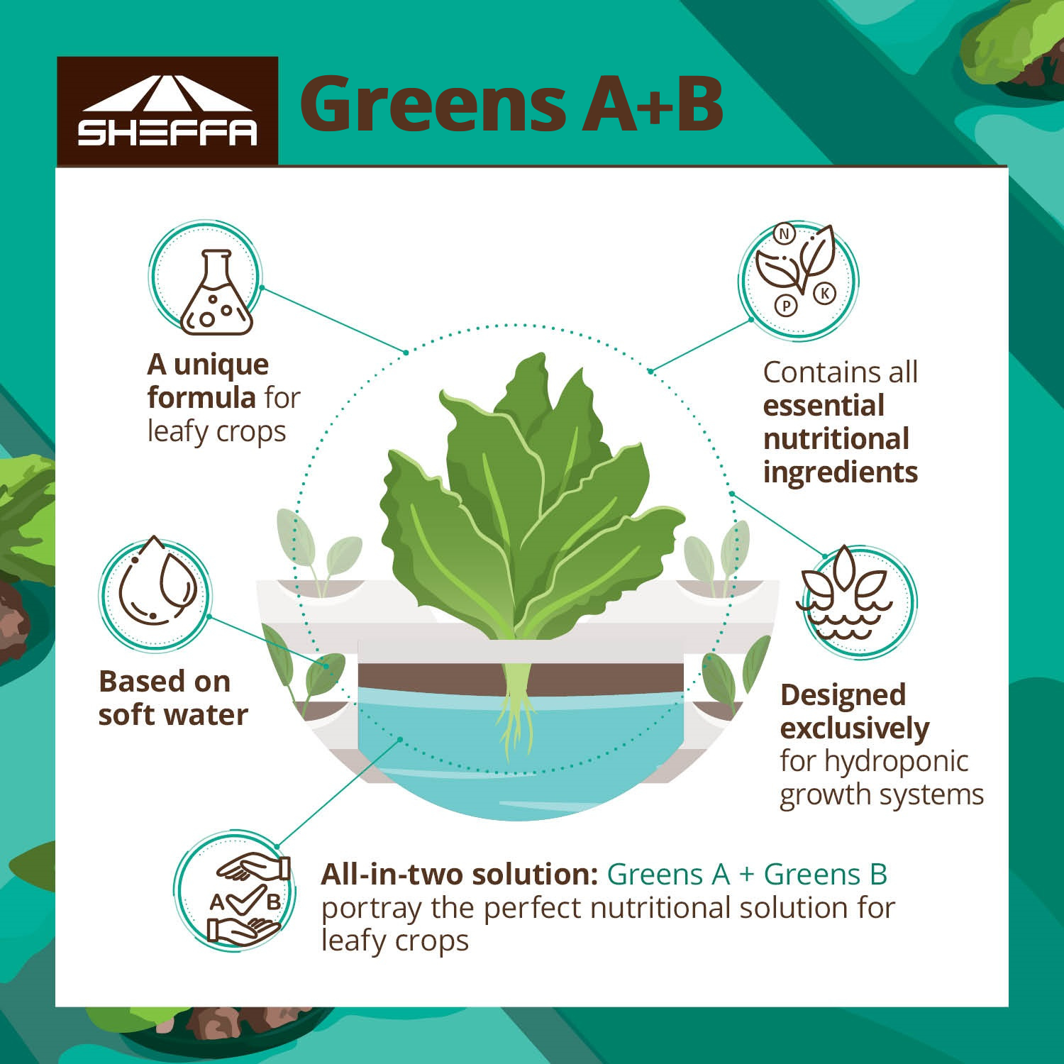 A unique formula of nutrient solution for leafy crops in hydroponic growth systems, the Greens duo contains all essential nutrients for vigorous, green, and healthy growth.